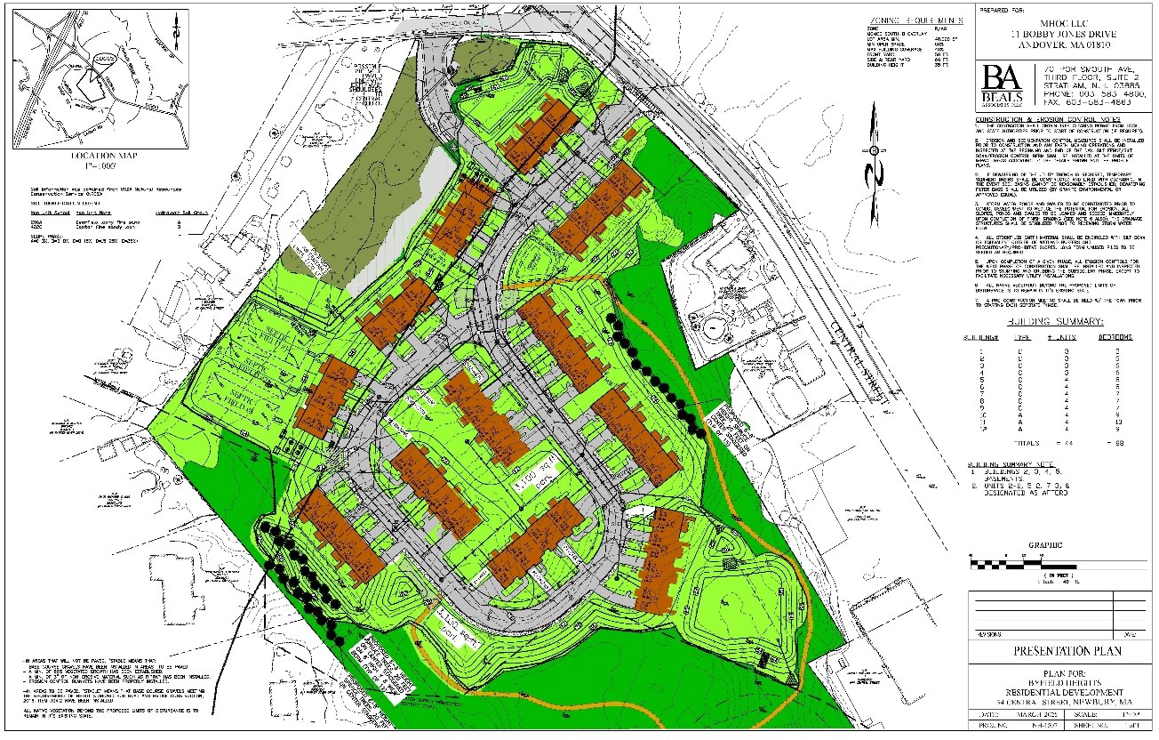 Residential development consisting of 44 townhome units on a 10.0+/–acre parcel of land located on Central Street in Newbury, Massachusetts.